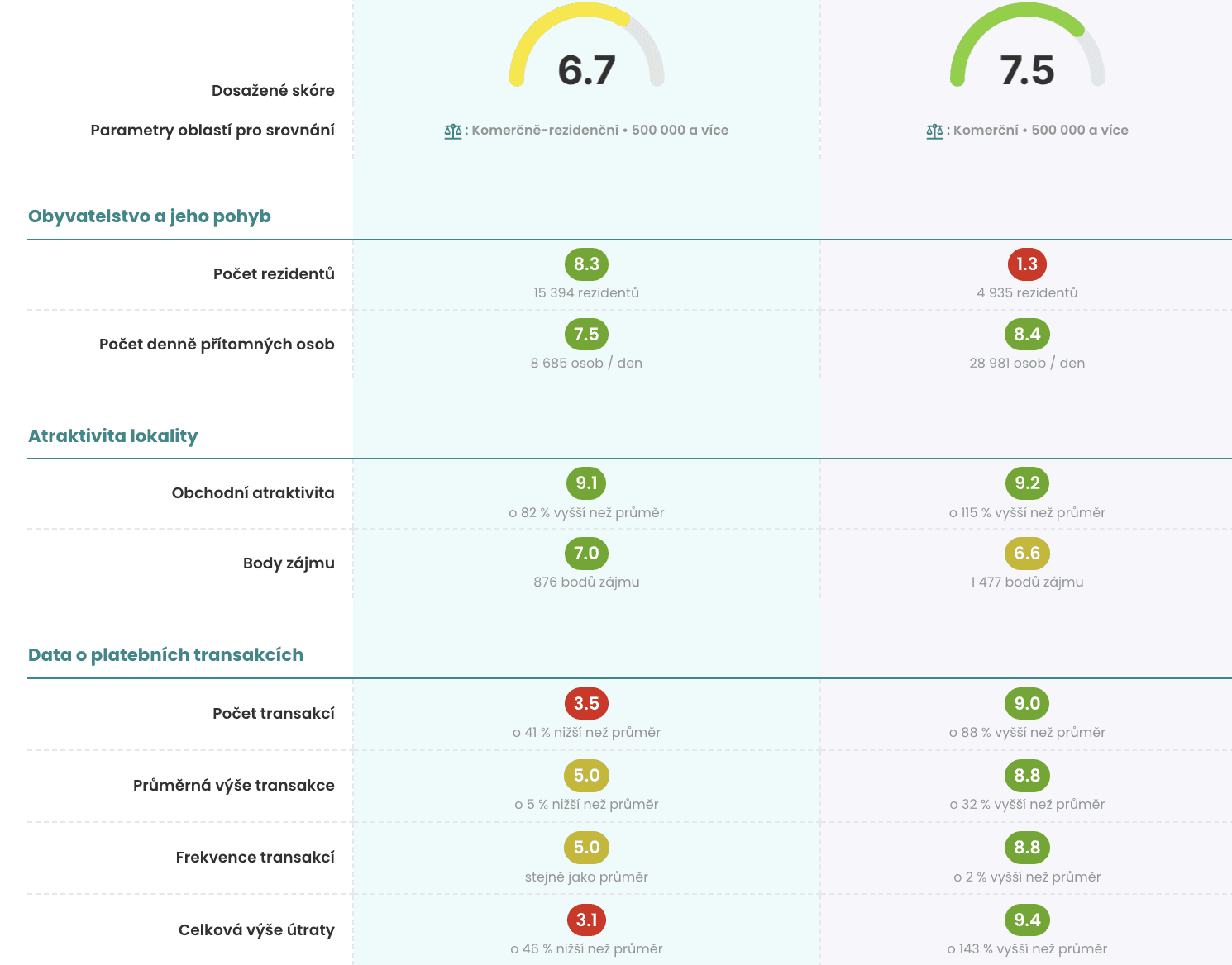 Výběr obchodních prostor už dávno nemusí být jen o osobním dojmu. Díky nástrojům jako MarketSpot můžete porovnat desítky lokalit podle reálných dat – pohybu obyvatel, výše útrat, konkurenčního prostředí nebo dopravní dostupnosti. Na jednom místě tak získáte srovnání lokalit, které by jinak vyžadovalo týdny manuálního průzkumu.